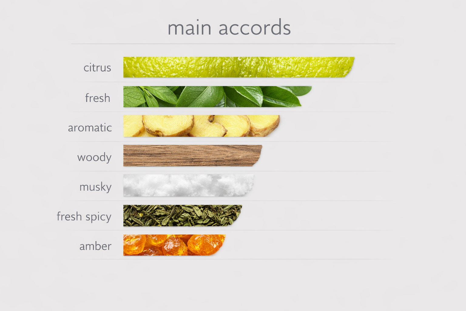 Toppnoter: Bergamott, citron, petit grain, ingefära